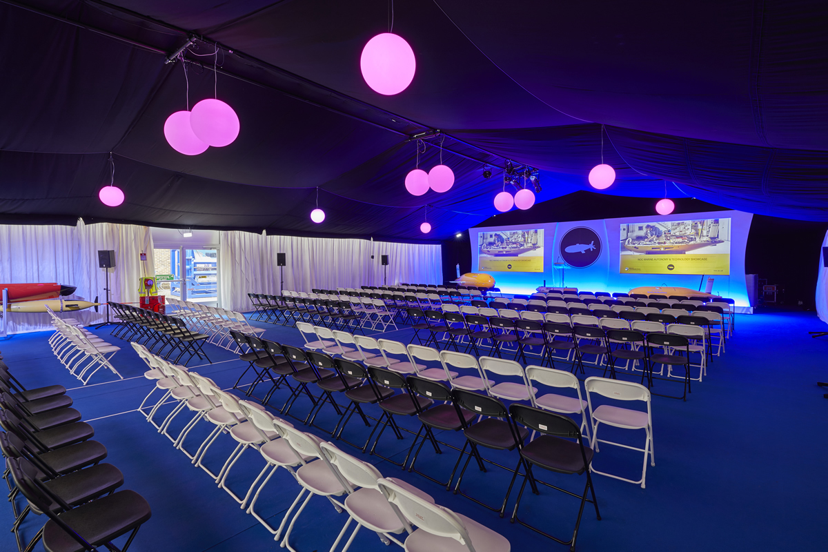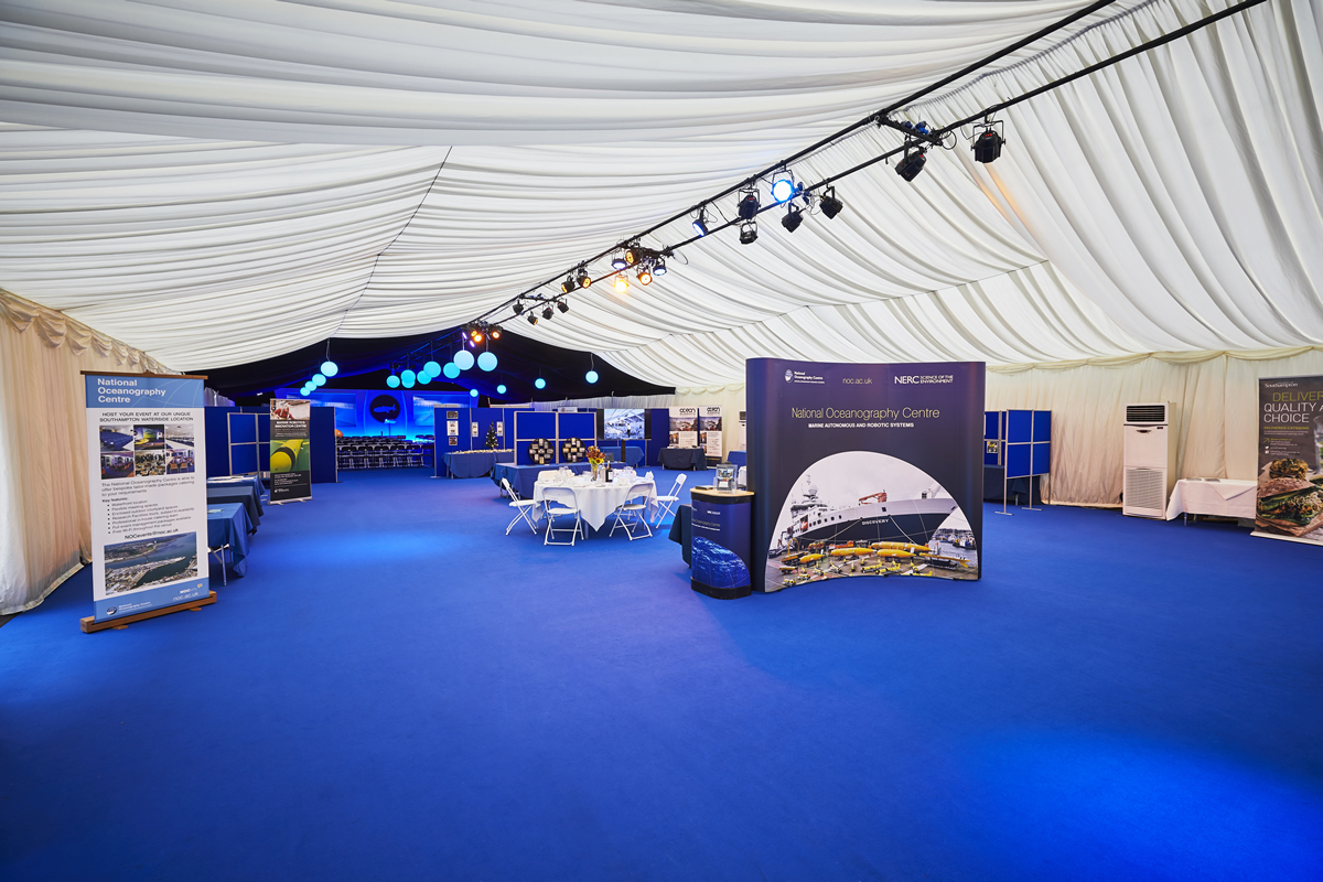 Our nominated contractors can provide quotations for carpets, linings, heating furnishings, lighting and Audio Visual equipment and services. The structure can be located in various locations on the NOC estate including the dockside area, in this location floor to ceiling glass windows can be hired to enable stunning views of the Empress Dock and the port of Southampton beyond. Interiors can be arranged to suit your event needs.